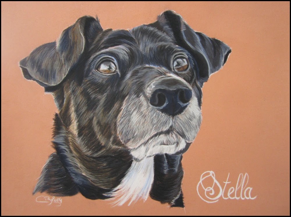 Le portrait du jour est l'hommage que m'a commandé Laura pour sa chère Stella. Stella était une petite chienne ratier belle comme tout, toute noire et très expressive. Voici les étapes de son petit portait en 18*24cm :